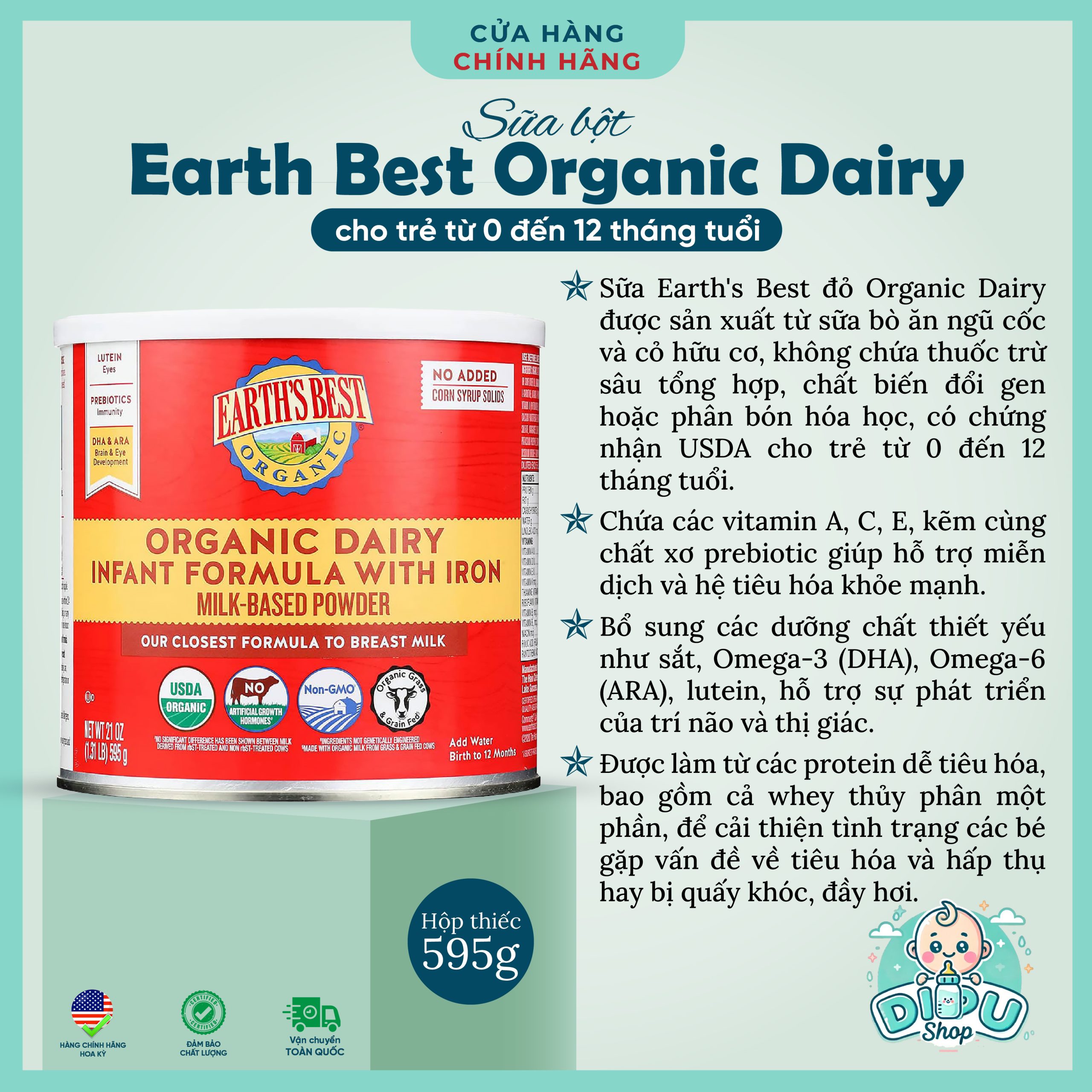 🍀 Mẹ nào muốn bé phát triển toàn diện, hệ tiêu hóa được đảm bảo 1 cách tối ưu, dễ tiêu & không gây táo bón, bé được sử dụng dòng sữa TINH KHIẾT SIÊU SẠCH ORGANIC cao cấp thì lựa chọn ngay Earth’ Best hộp màu đỏ!