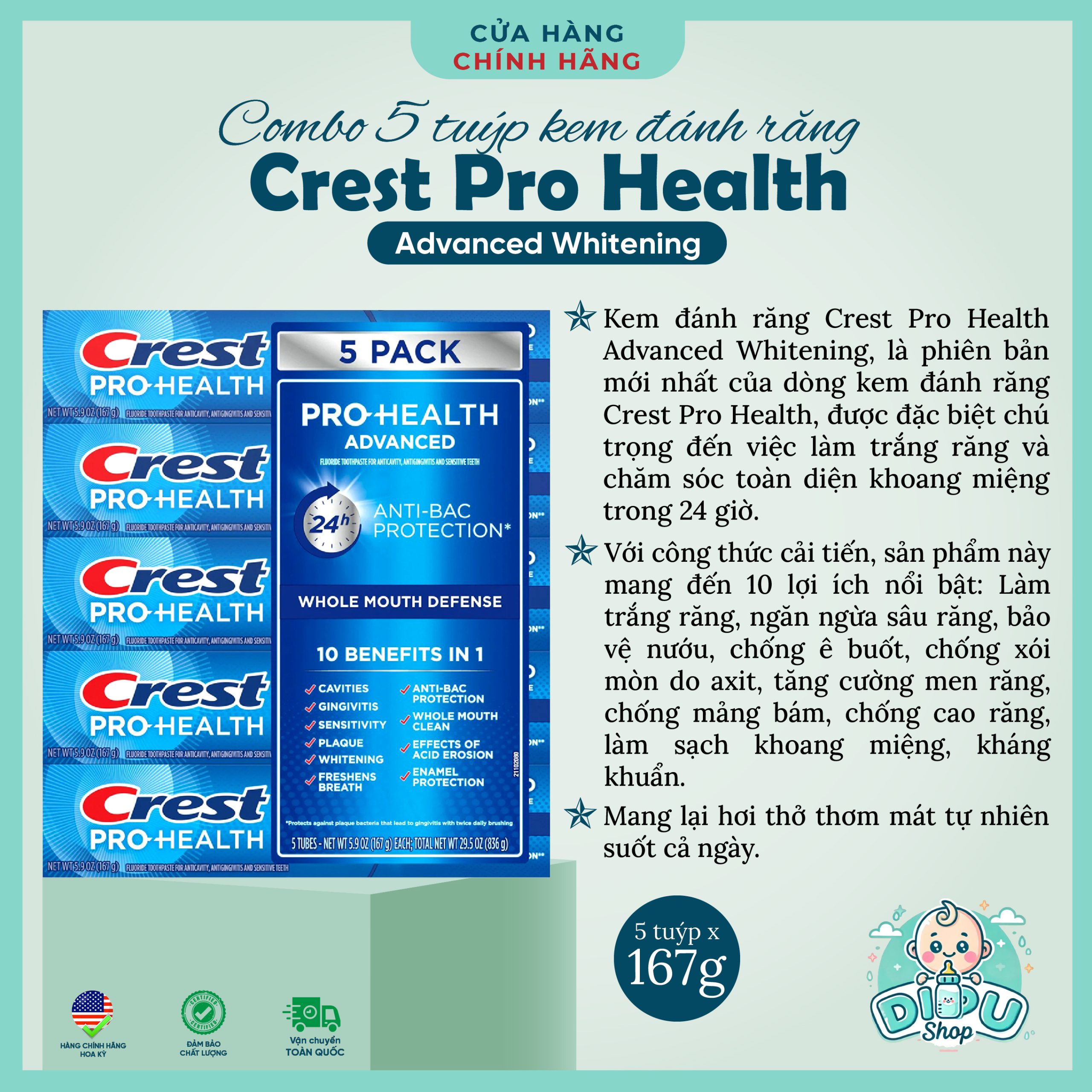 ▶️ 8 lợi ích nổi bật của kem Crest Pro Health Advance Whitening & Intensive Clean :