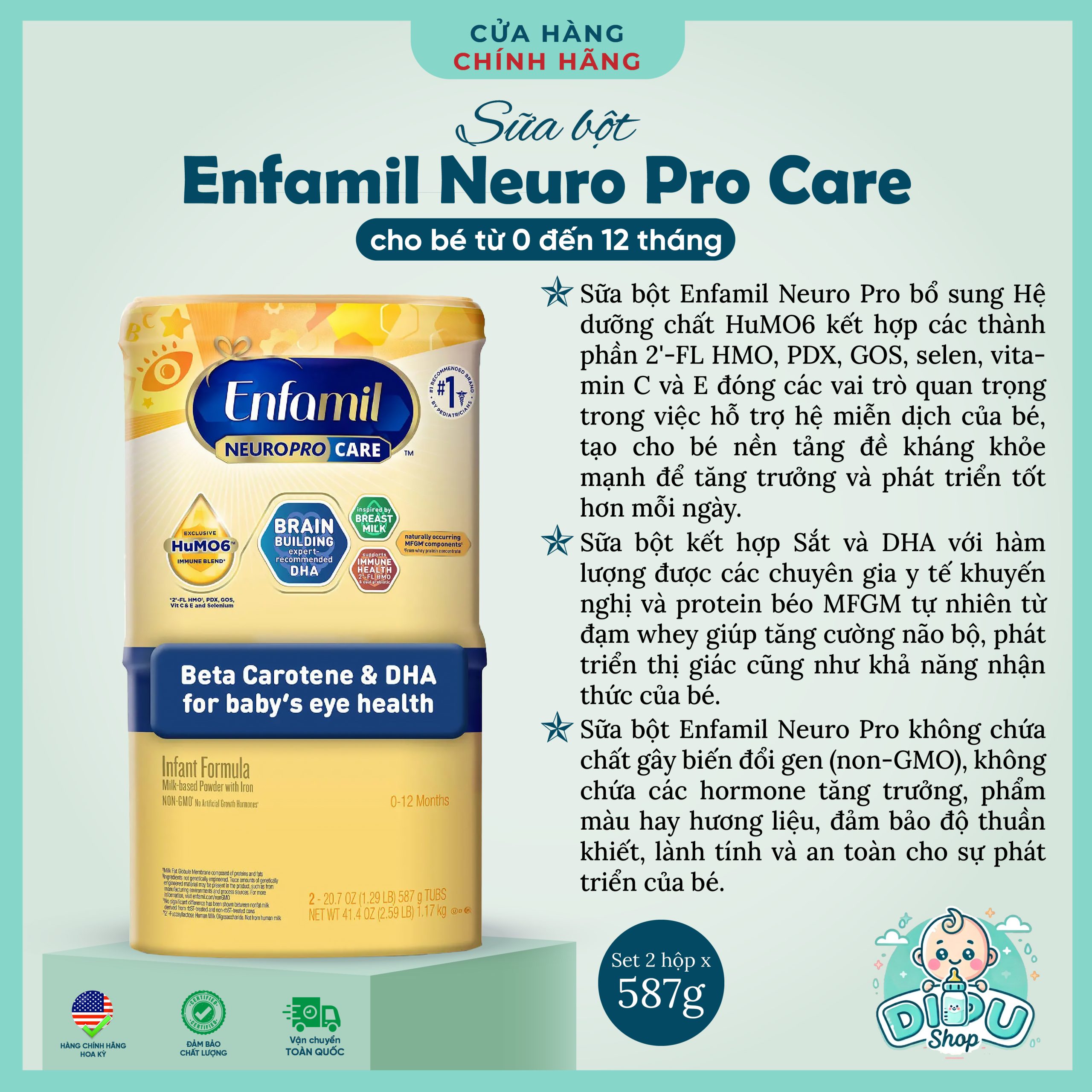 🌟Sữa Enfamil NeuroPro Care là sản phẩm đáp ứng nhu cầu dinh dưỡng của trẻ em trong độ tuổi từ 0-12 tháng. Sản phẩm an toàn, không chứa thành phần biến đổi gen, hỗ trợ đề kháng tự nhiên của riêng bé.