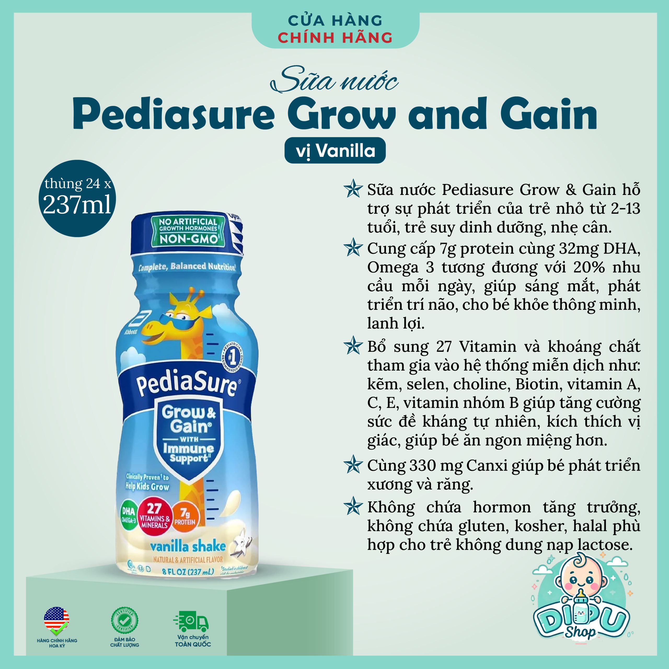 ✅ Sữa nước PediaSure chứa nhiều protein, 25 loại vitamin và khoáng chất cần thiết cho sự phát triển của trẻ nhỏ