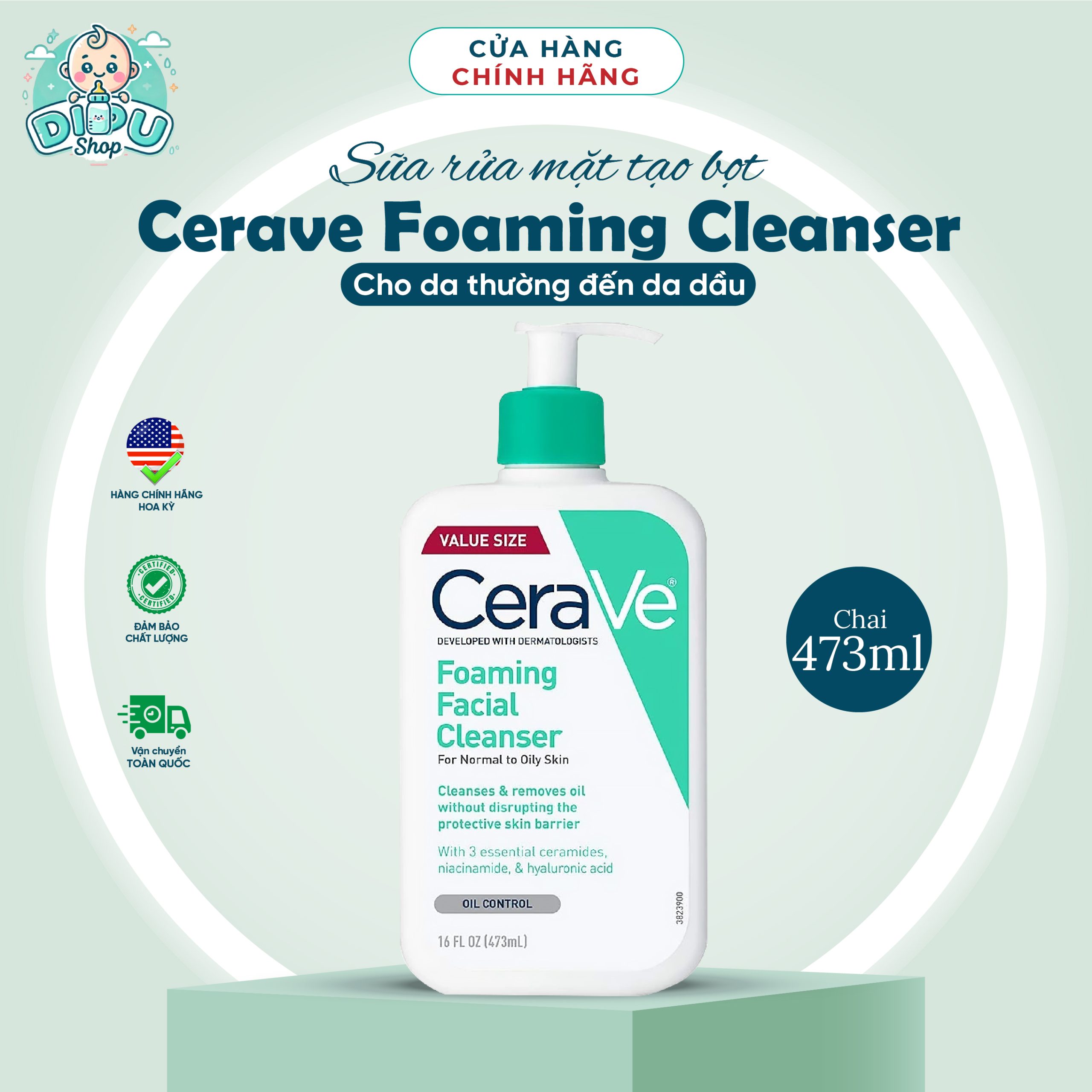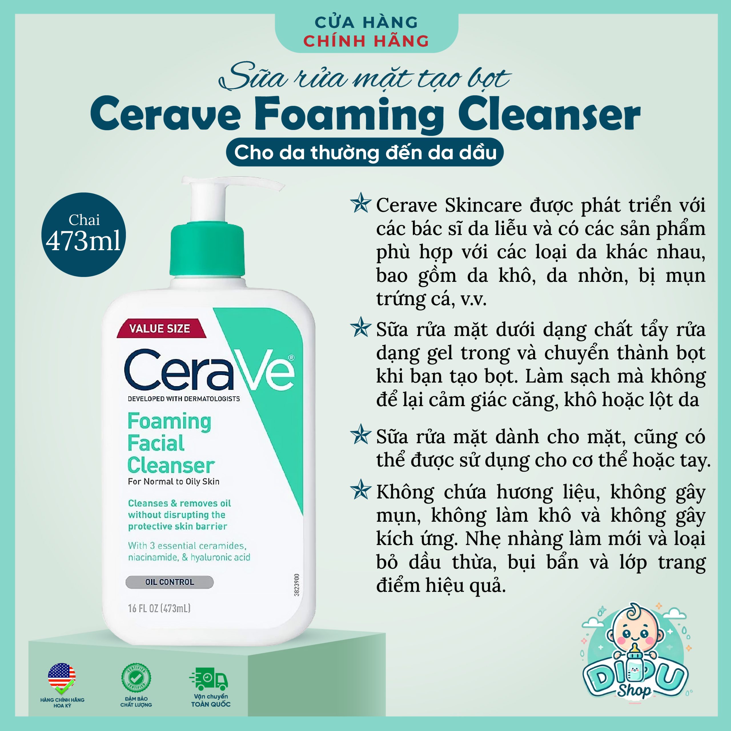 Với sự kết hợp của ba ceramides thiết yếu, niacinamide và hyaluronic acid, sản phẩm giúp làm sạch và giữ ẩm cho làn da mà không ảnh hưởng đến hàng rào bảo vệ da mặt và cơ thể.