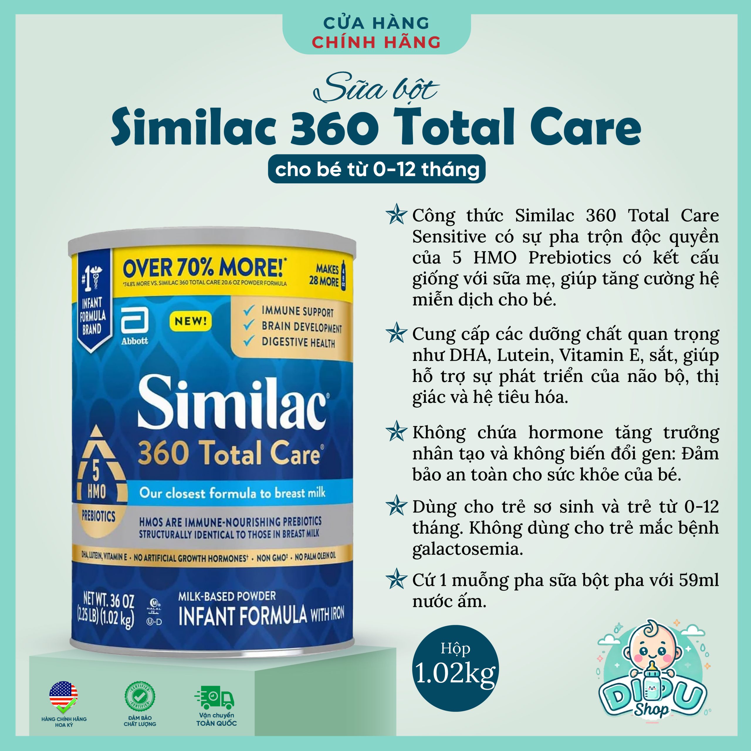 – HMO trong Similac 360 Total Care không phải từ sữa mẹ nhưng dựa trên khuyến nghị của bác sĩ nhi khoa:
