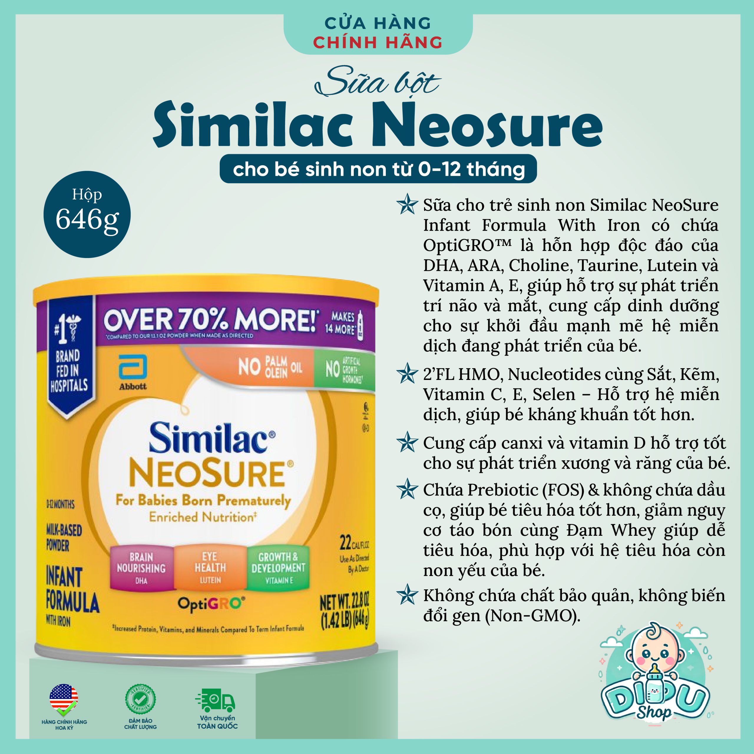 Sữa Similac Neosure Nội Địa Mỹ 646gr Dành Cho Bé Sinh Non, Nhẹ Cân