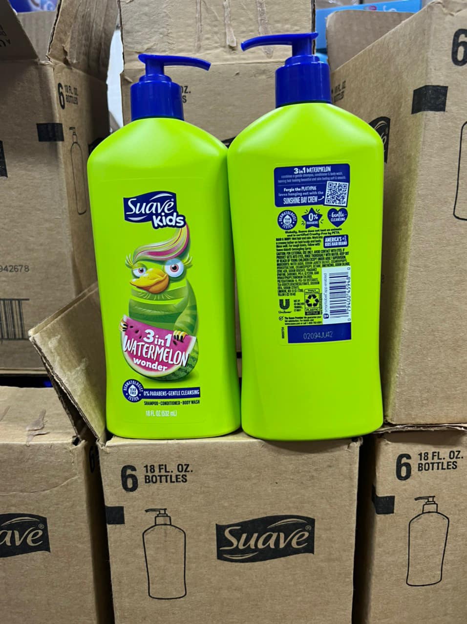 🍉 Suave Kids 3 in 1 với mùi hương Dưa Hấu tự nhiên và những hình ảnh vui nhộn bên ngoài làm bé thích thú hơn khi tắm