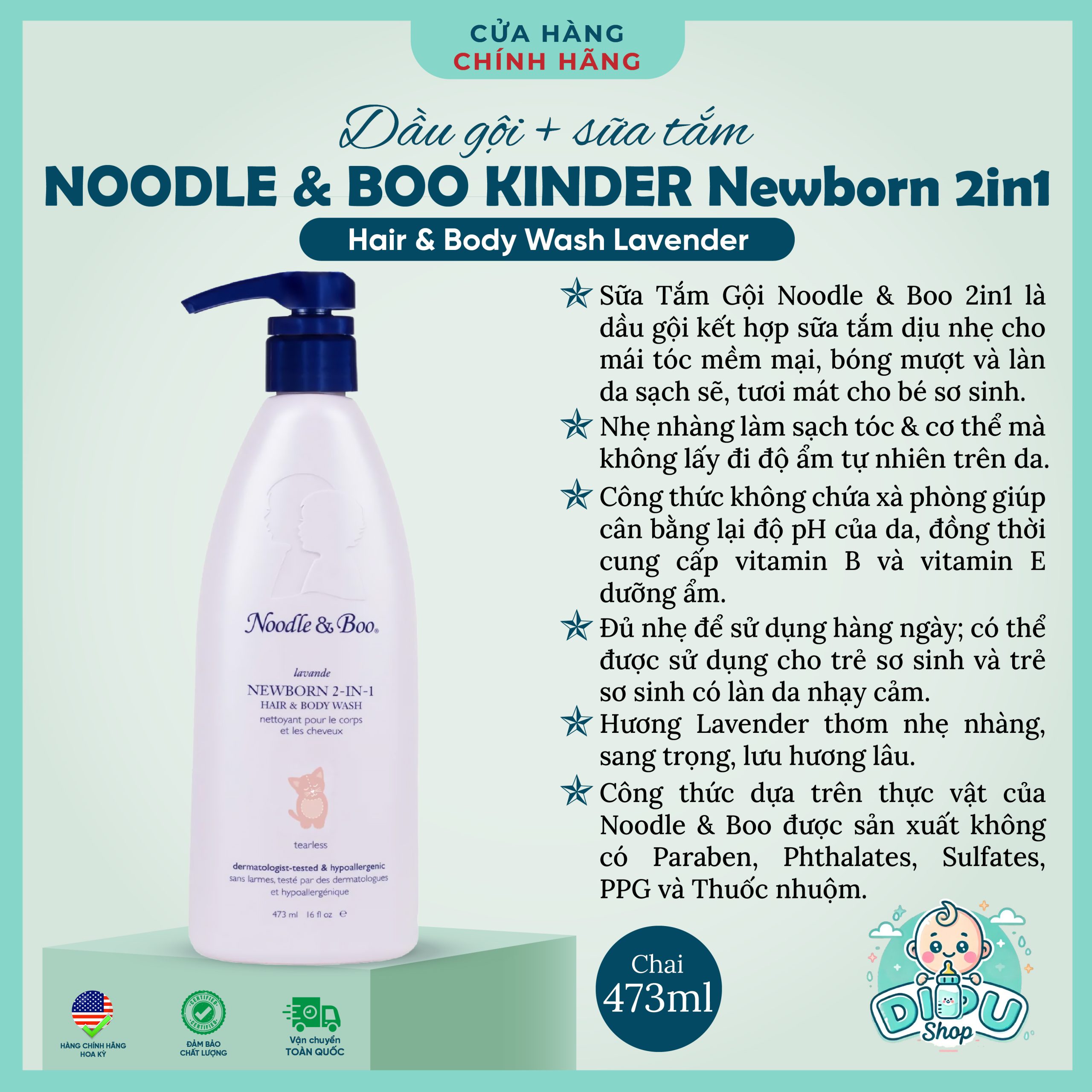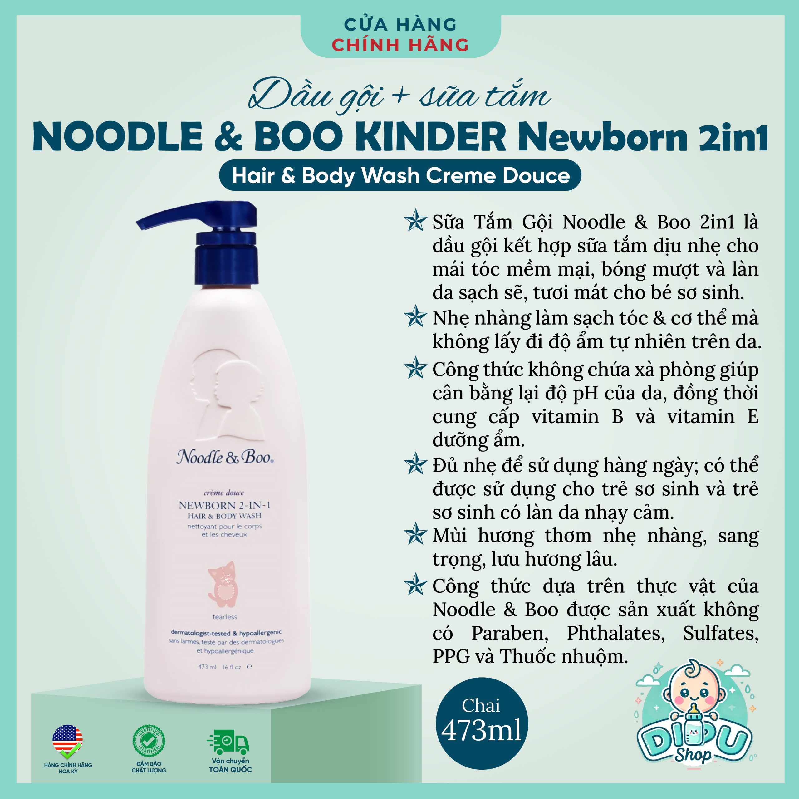 – Sữa tắm gội Noodle & Boo Newborn 2in1: