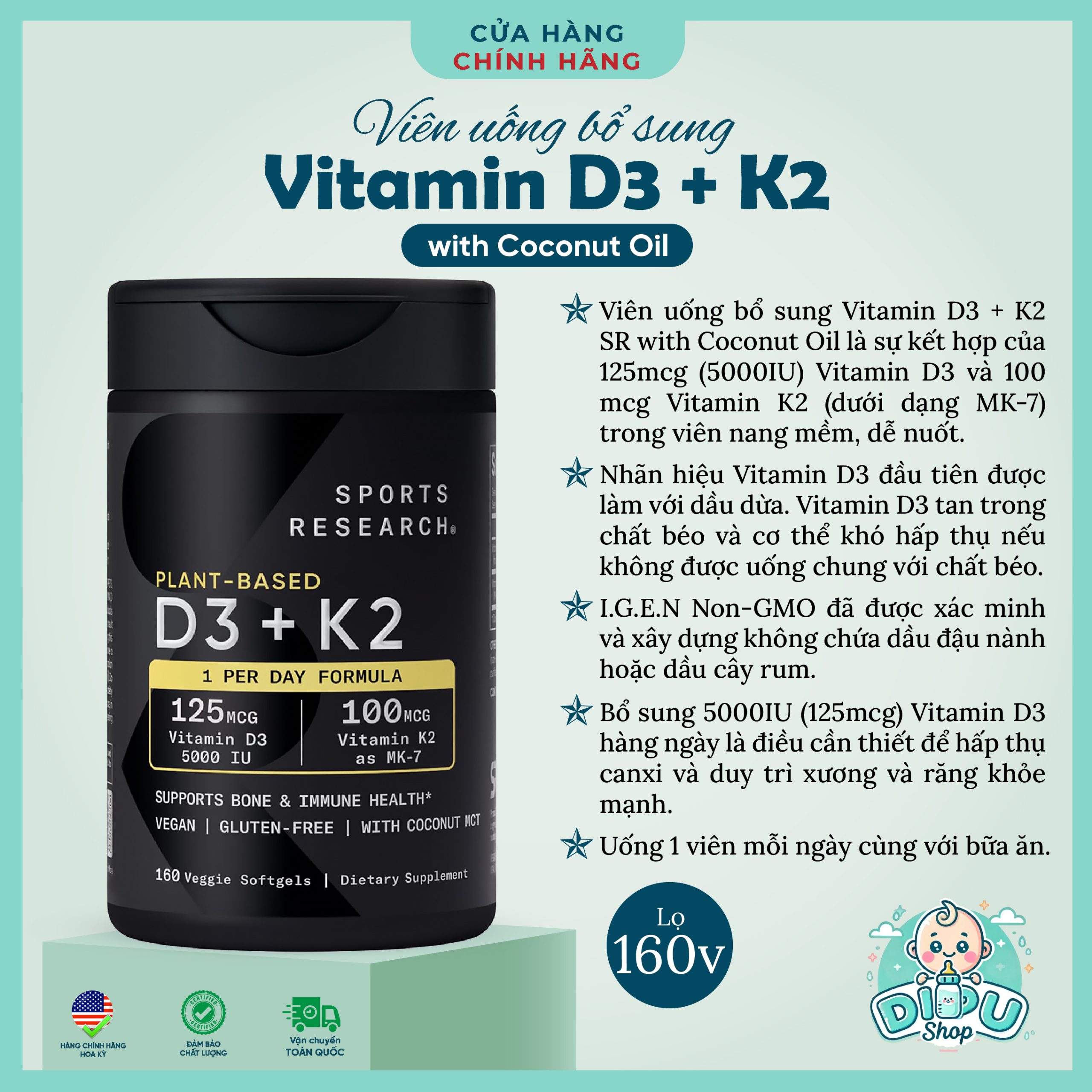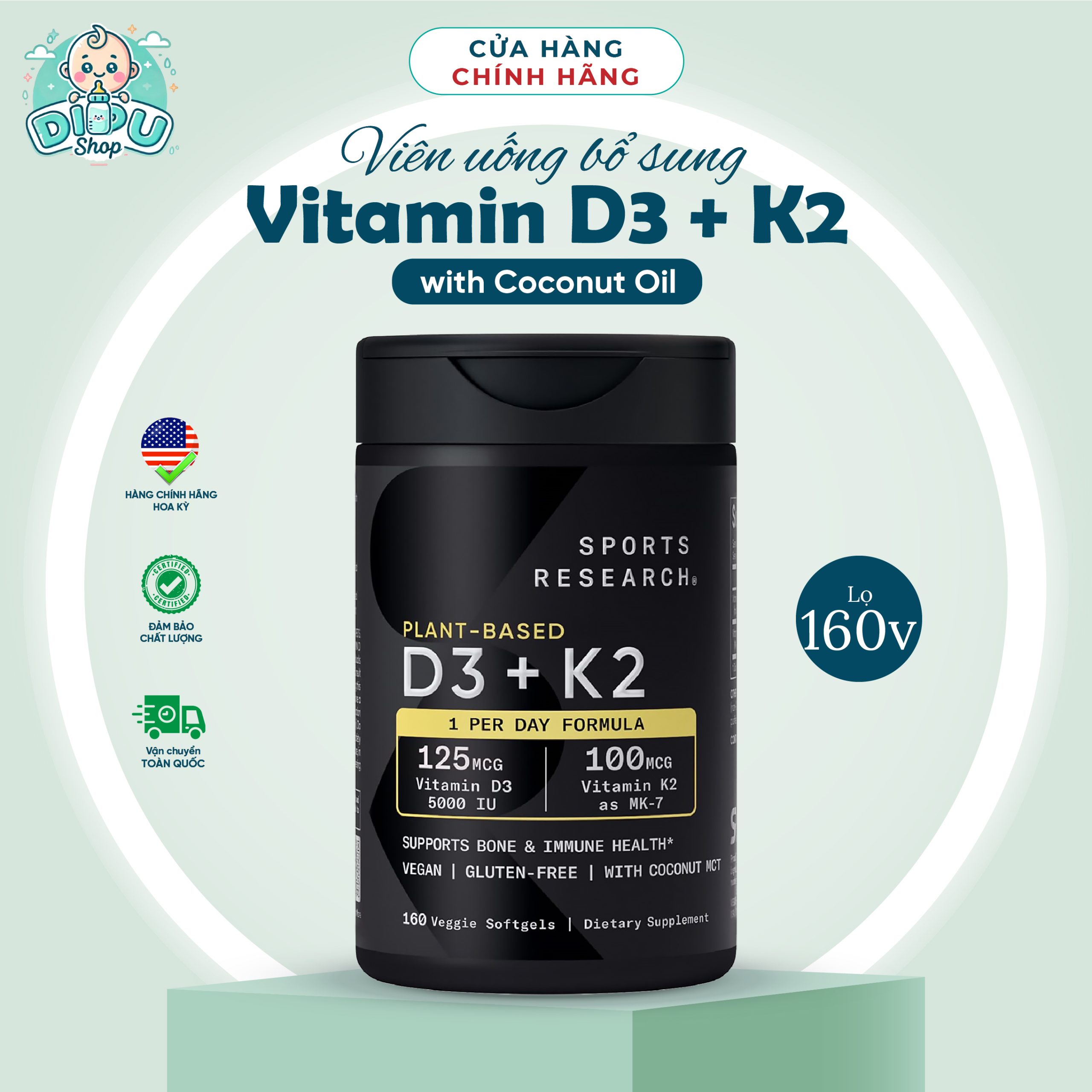 Thực phẩm bảo vệ sức khoẻ Sports Research Vitamin D3 + K2 160 Viên